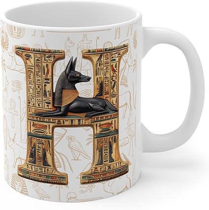 مج سيراميك بتصميم Royal Anubis Letter H تصميم مميز وأنيق ☕✨