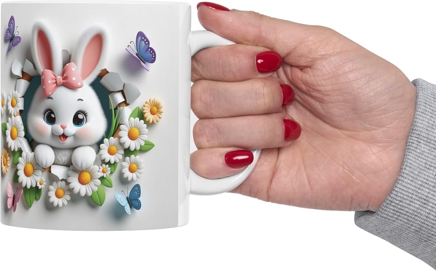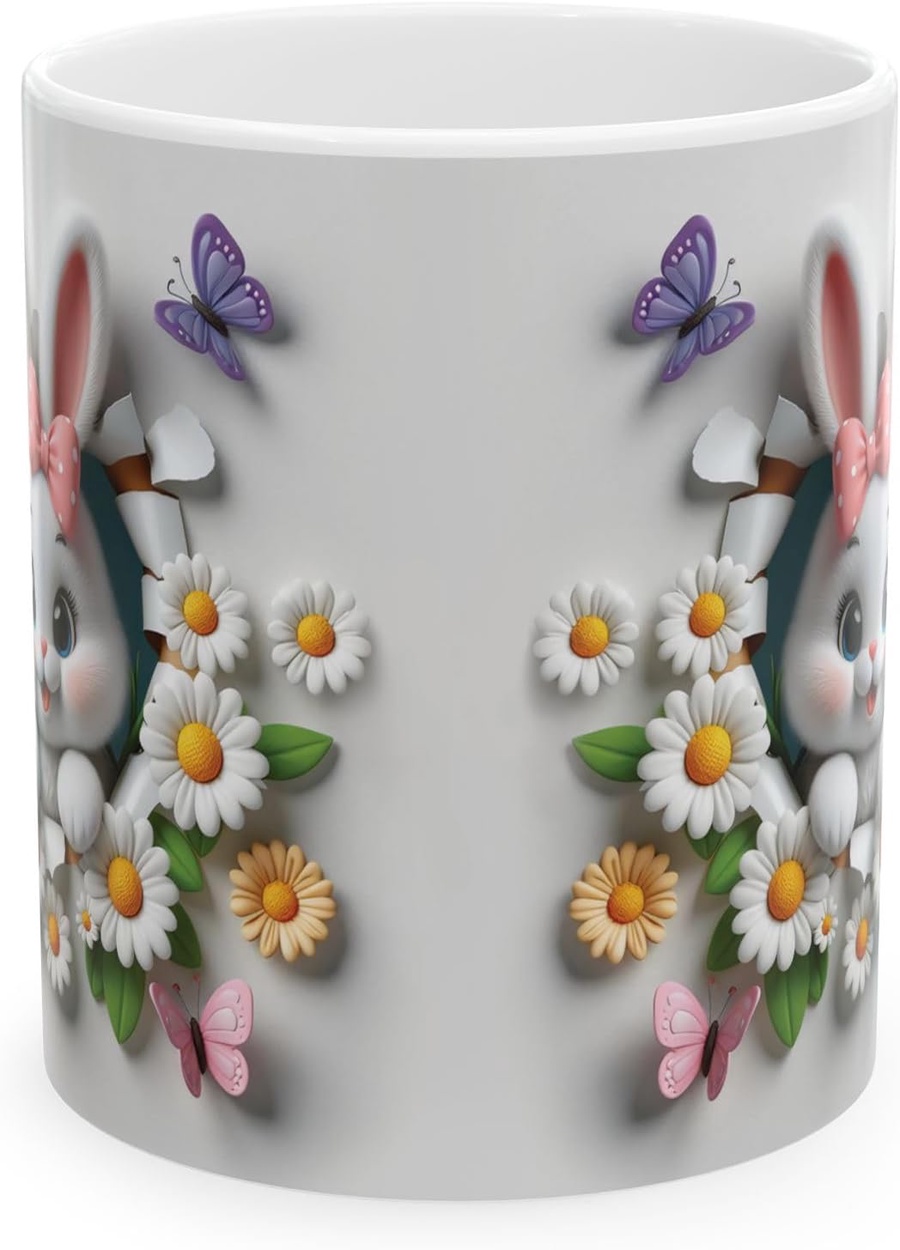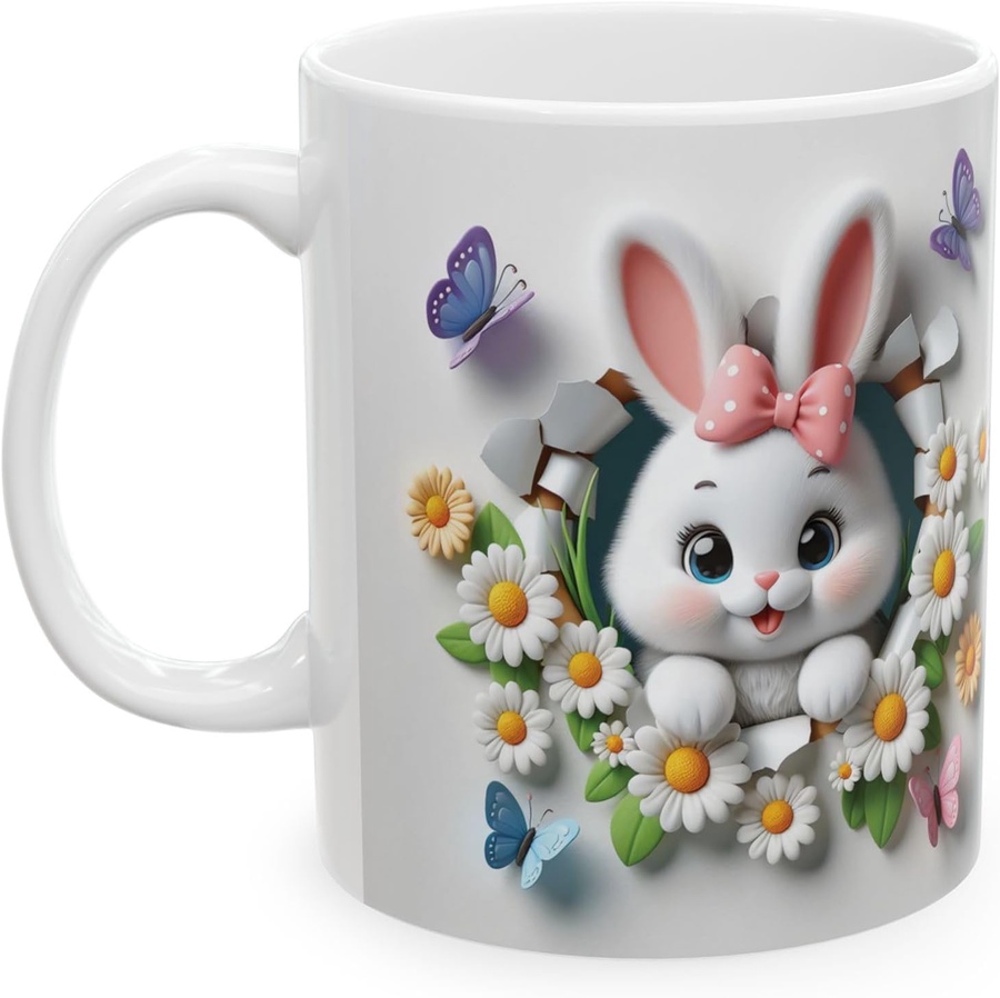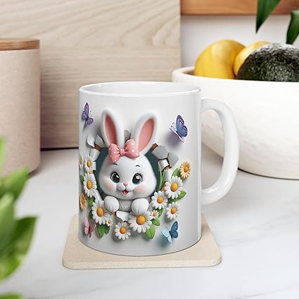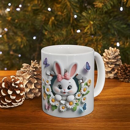 مج سيراميك بتصميم Rabbit & Floral Design تصميم مميز وأنيق ☕✨