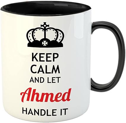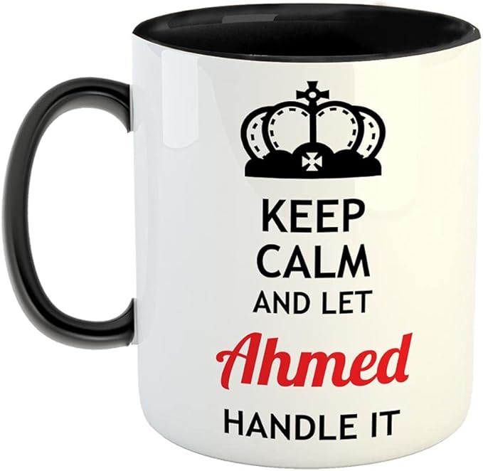 مج سيراميك بتصميم Keep Calm and Let Ahmed Handle It تصميم مميز وأنيق ☕✨